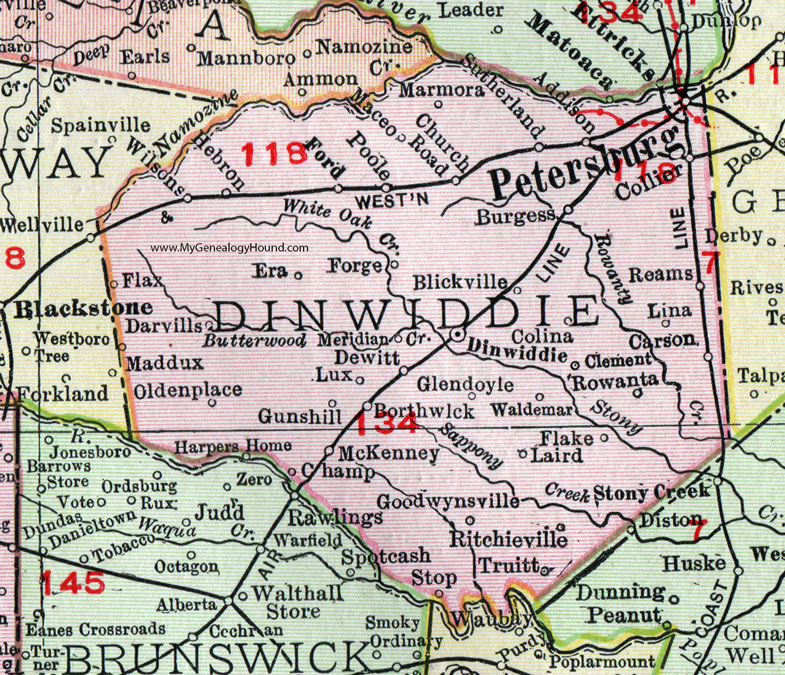 Counties Northumberland, VA Brunswick, VA Lancaster, VA Lunenburg, VA City of Richmond, VA Dinwiddie, VA Wilson, NC Wake, NC Prince Edward, VA King William, VA Richmond County, VA